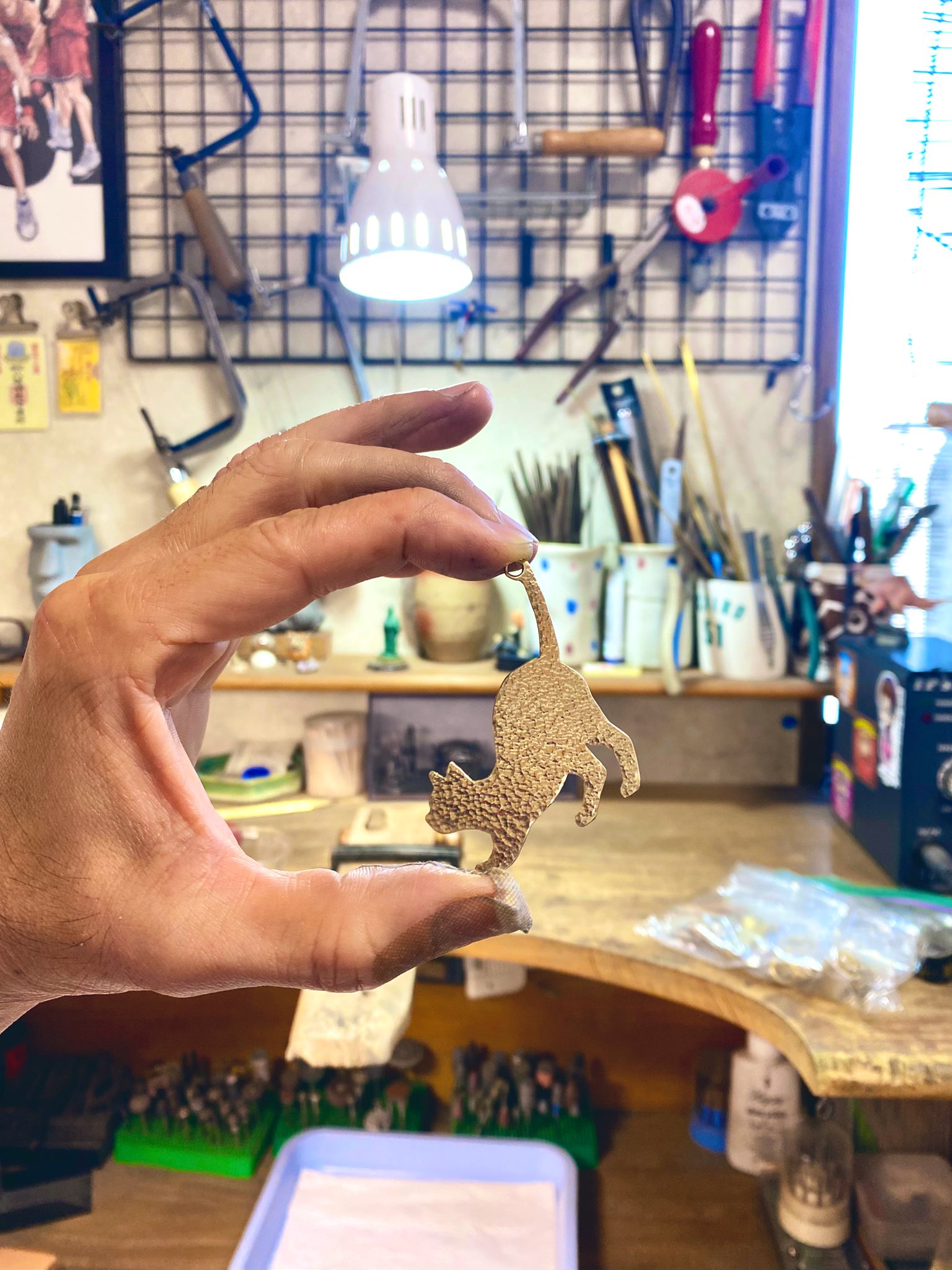 たたいて作る「ネコのペンダント」